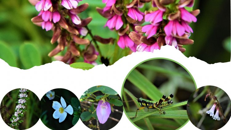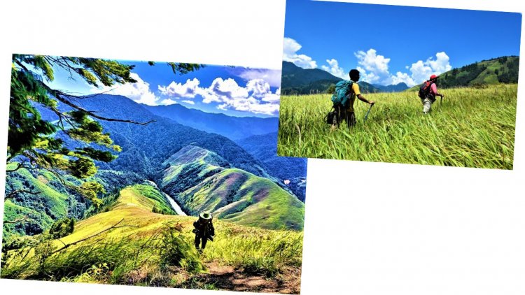We stopped now and then admiring the views. The trail was in a riot of colors, with blue, pink, purple, and white flowers in bloom. A grasshopper in vibrant colors was a delight to watch !. The cool breeze never tired us. We climbed the slope's 30-degree gradient to 80 degrees. The last stretch was a transition from open grasslands to rainforests. After a 4-hour climb, we reached our first camp Aniku overlooking hills.