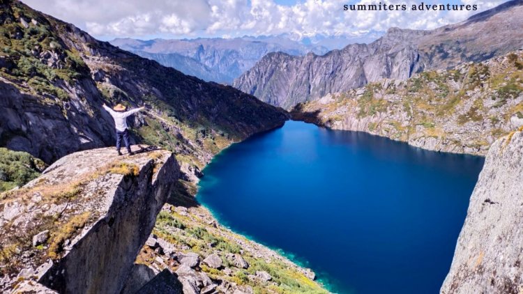 After breakfast in the morning, we marched ahead with excitement and started our hike to the 3rd lake – Koyombo Lake located at 13500 ft. It was a relaxed 1-hour hike to the lake but cannot explain the thrill of the sharp narrow ridge and the challenges it gave me. The route was through mountainous terrain with no tree line, only patches of velvet green spread abundantly. All our stress disappeared at the sight of the lake. After witnessing the 3r rd lake, and spending valuable time overlooking it. We gently bowed to the creator, for being mercy on us. I tiptoed, from rocky outcrops and made my way to 4 th lake – Dinu Lake, also the most gorgeous alpine lake of all.