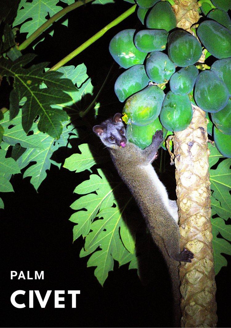 After a tea break, watching sunset we set off in search of owls, during the course we could accidentaly sight a palm civet clingling to Papaya fruit tree.Without disturbing it during its dinner time we could make few portraits in the course of time.