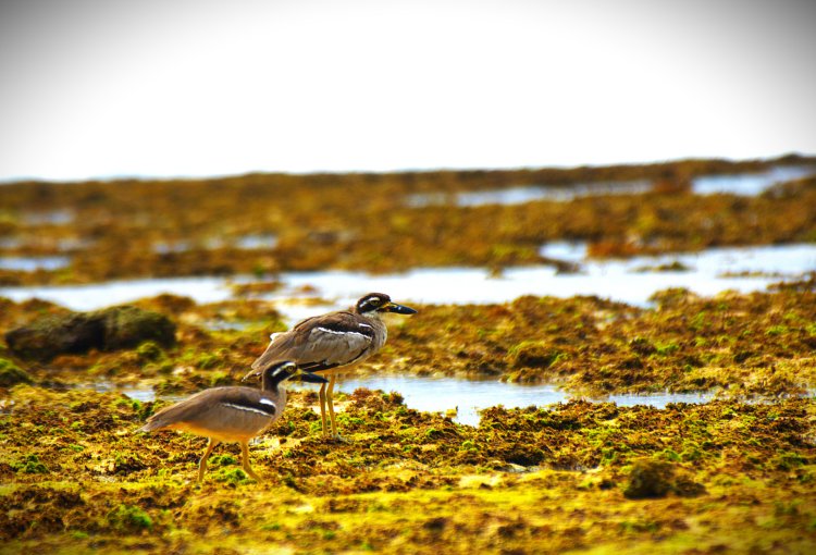 Further south of Hut Bay you reach to a place called Harminder Bay, from here there is a trek (straight walk, no ups & downs) of 8 km one way. We took a diversion to sight another Endemic Beach Thick Knee. After about 2-3 walk on the sandy shore our guide Kishore and Jabili were able to spot a pair feeding on fiddler crabs. They might had noticed us and they began to move toward the sea. After few capture, all of a sudden it began to rain like cats and dogs. We left them undisturbed and took shelter a palm tree.