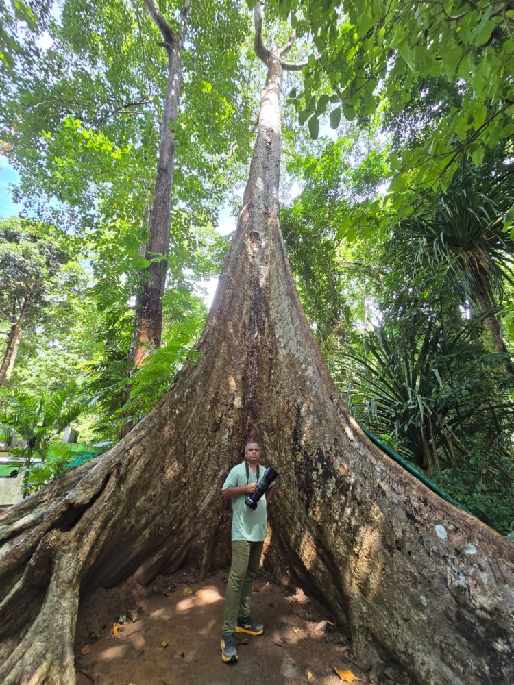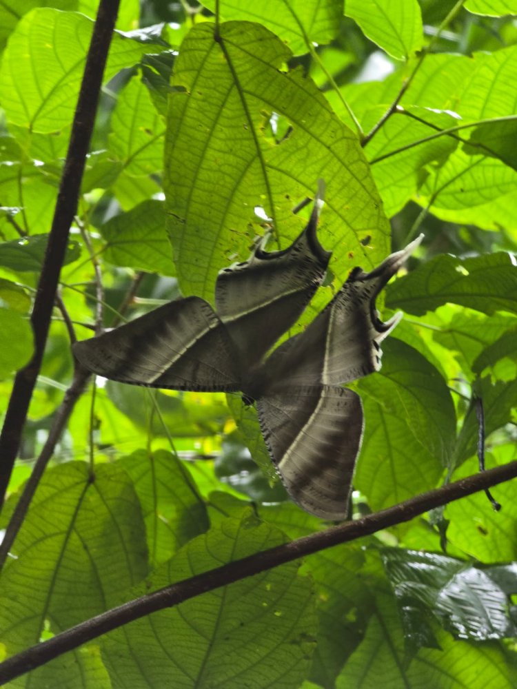 During the exploration, Vinay spotted a moth through his keen observation which we would missed it.The moth was resting below the leaves underneath of canopy.It was Lyssa zampa, the tropical swallowtail moth or Laos brown butterfly. It is known for being an unusual diurnal (day-flying) and nocturnal moth